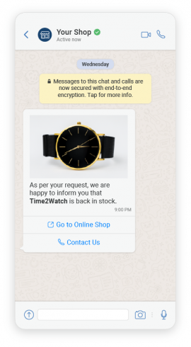 Create automated responses to messages you receive via WhatsApp, Instagram and Facebook based on keywords, or allow the user to explore the information with interactive buttons and menu options.